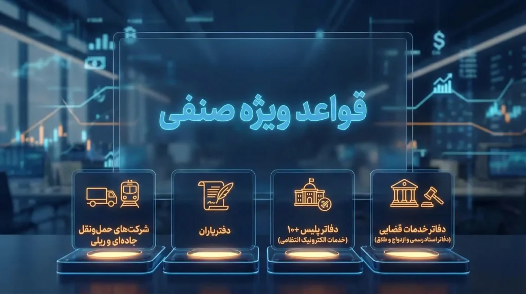 بله، برای افزایش دقت، قواعد ویژه صنفی وجود دارد. مثلاً برای دفتریاران (F29) بر اساس تعداد اسناد و تعرفه خدمات و برای دفاتر پلیس +۱۰ (F34) بر اساس تعداد خدمات (صدور کارت ملی و...) و تعرفههای مصوب دولتی درآمد برآورد میشود.