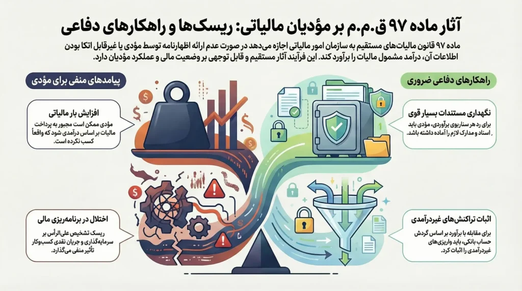 اجرای سختگیرانه قواعد برآوردی ماده ۹۷ تأثیرات متعددی بر رفتار و وضعیت مالی مؤدیان دارد: